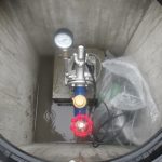 佐賀県某所で行っていた、さく井工事が完了し 揚水設備工事(水中ポンプ取付)を行いました。 井戸には桝を設置し、マンホールを取り付けました。